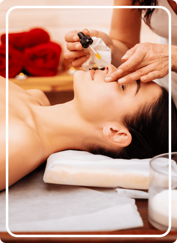 Nasya is an excellent remedy for headaches, migraines, clearing the sinuses and clearing the nasal passage to enhance breathing. The process includes a point stimulating facial massage, followed by herbal steam and administration of oils through the nasal passage.